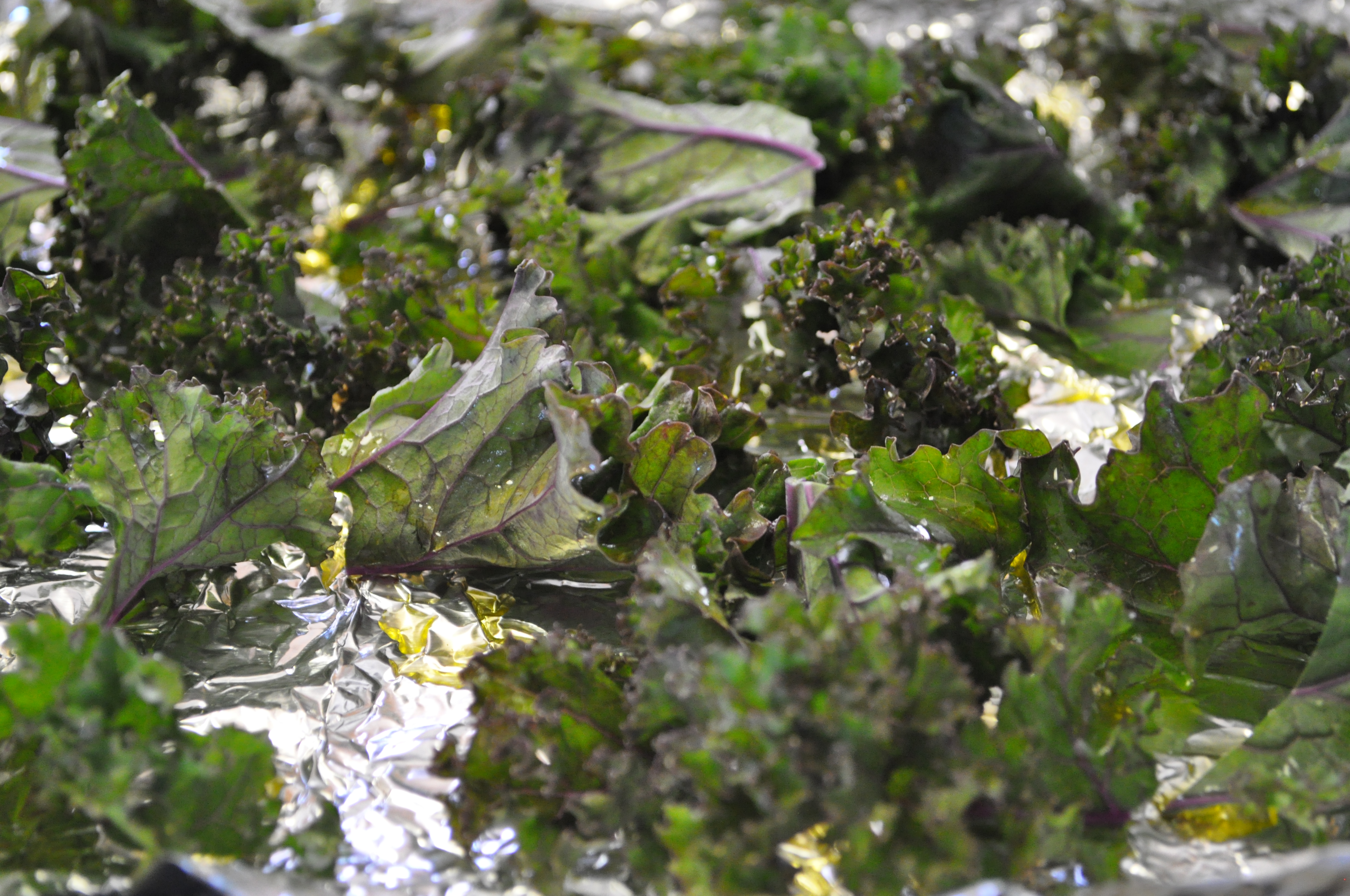 Last week I was making my way through Harmon’s when I saw it: Red Kale. It was green and leafy with deep purple running through it. It was a thing of beauty. I’ve never bought kale before but I remembered seeing a recipe for kale chips months ago and decided, since this kale was SO PRETTY, that this was the opportune time to try it out. I just KNEW everyone in my family would be as excited as about it as I was!
