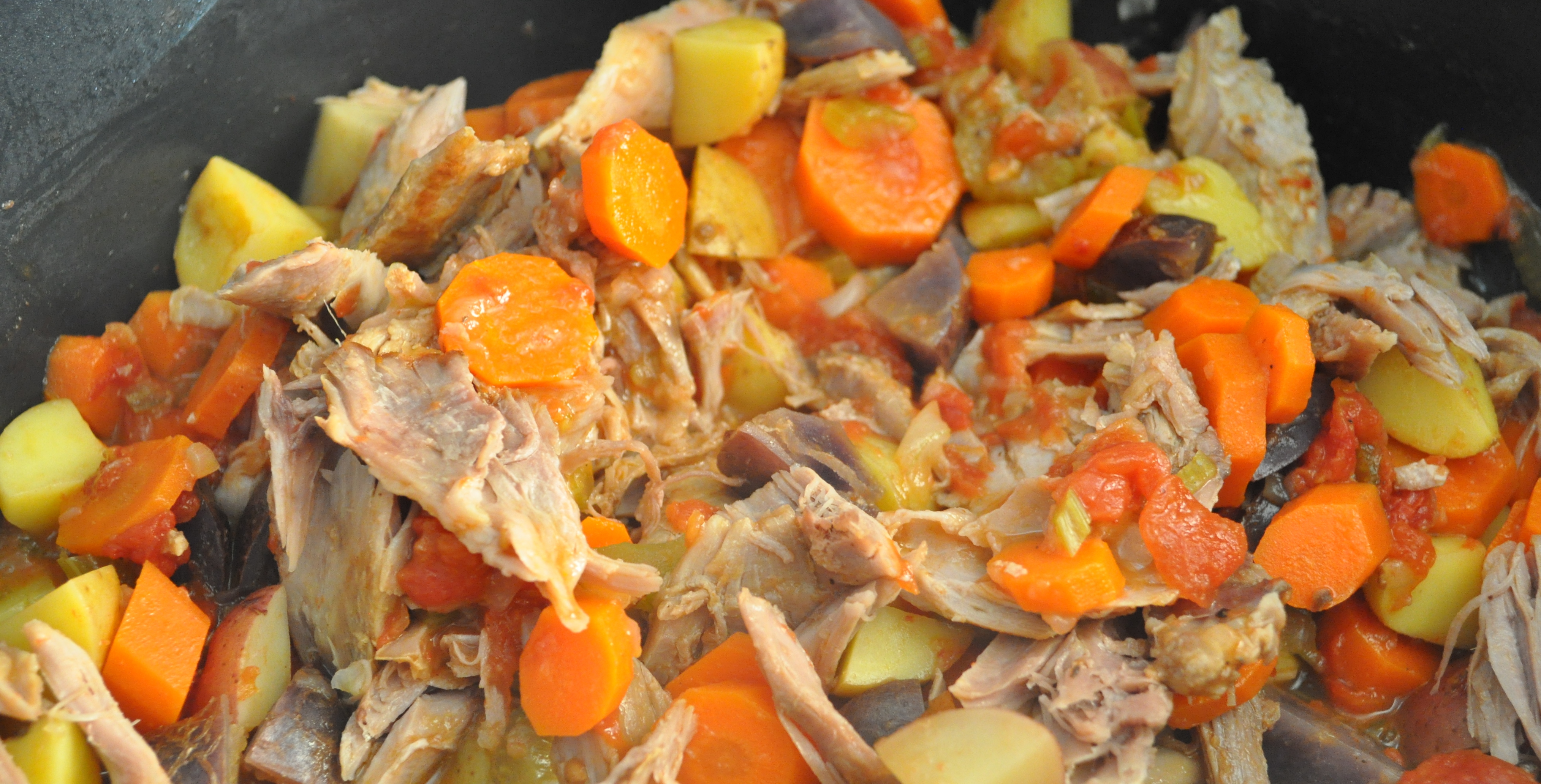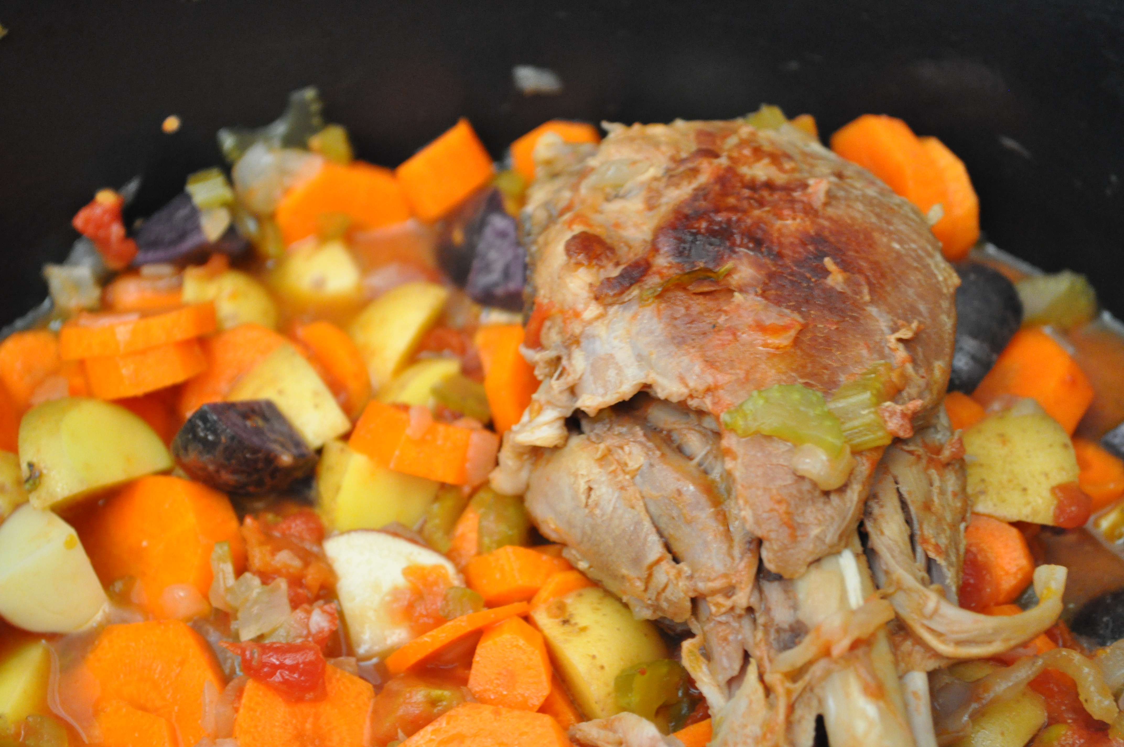 - Remove drumsticks from the pot and take the meat off the bones. It should be falling off the bone and very tender. Mix the meat back into the veggies and serve.