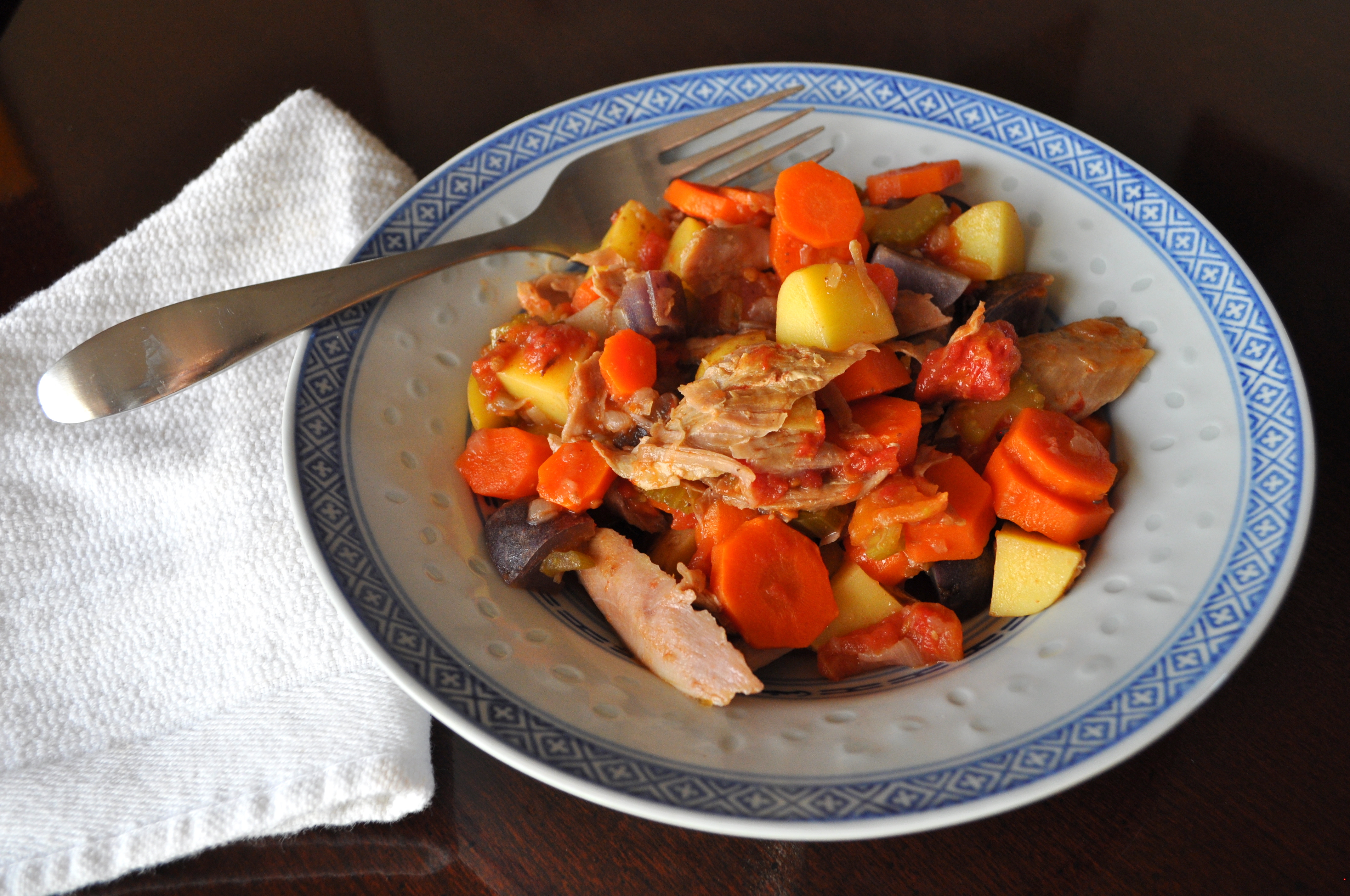 Simple. Rustic. Comforting. This one pot meal will warm you from the inside out on cold Fall or Winter evenings. It is one of the all time favorite meals my mom used to make when I was little. When we moved to Hong Kong and turkey legs were impossible to come by she did try it with chicken meat a few times and it was just not the same. This is the best time of year to make it as turkey legs are widely available. I have tried using Turkey breast meat but it was not nearly as moist or tender. Stick with those big drumsticks and enjoy a piece of my childhood…