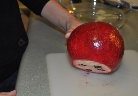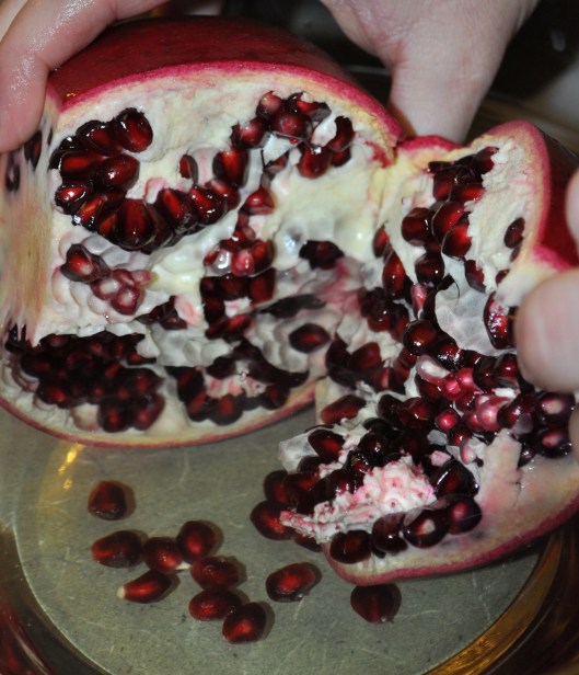 The pomegranates we had were actually so big I couldn’t get the right leverage to pull it apart! Andy stepped in: