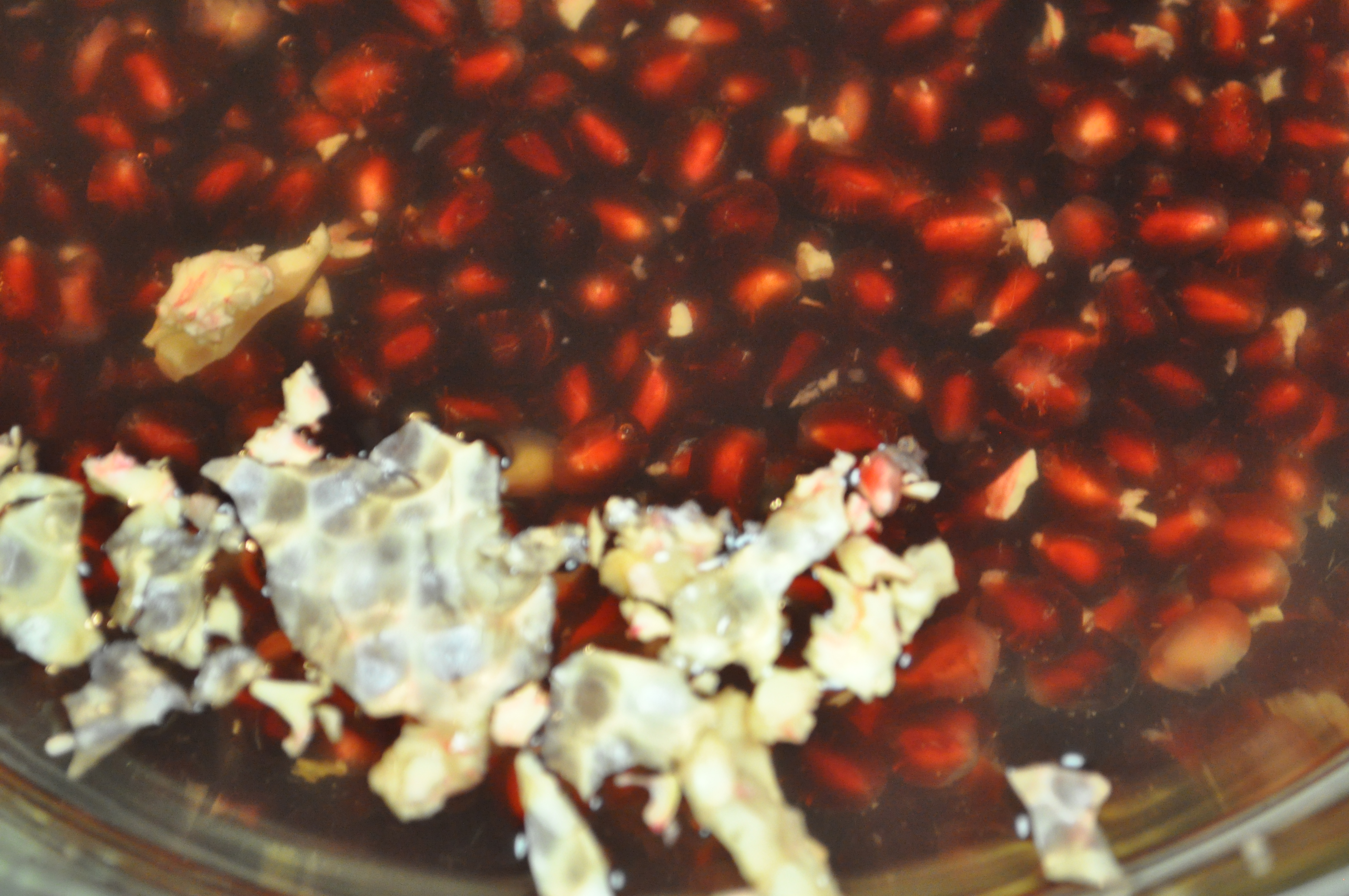 Gently ease the arils out. They will sink to the bottom. Any white pithy part that falls into the water will float to the top: