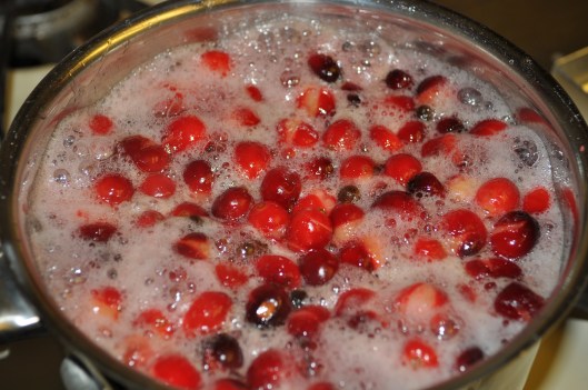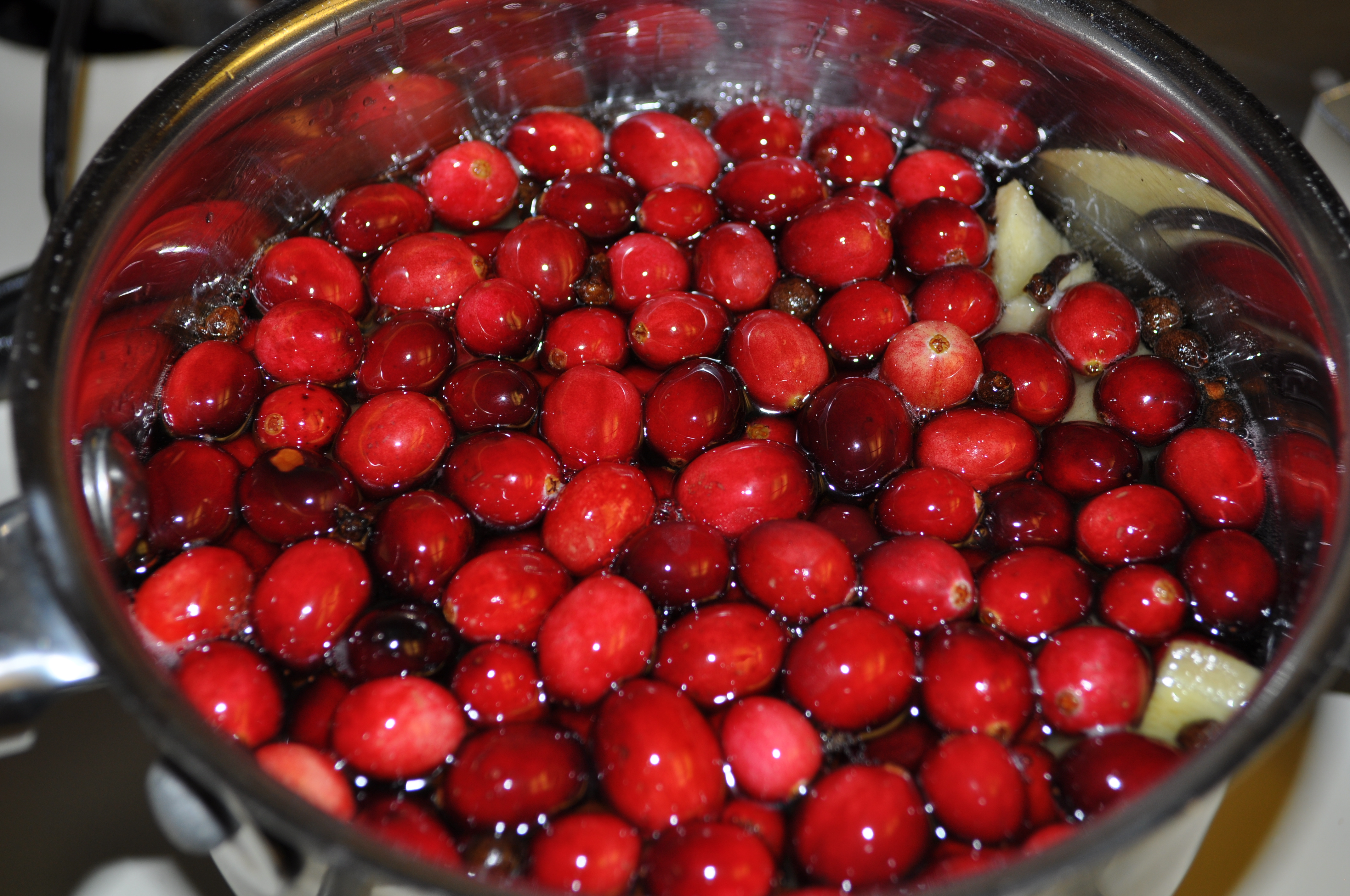 Place water, sugar, allspice, cloves, ginger and cinnamon in a small saucepan.Bring to a simmer. As soon as the sugar has dissolved, add the cranberries.