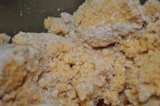 4. Use a pastry cutter or two knives to cut butter into the dry ingredients. Continue cutting until the mixture resembles fine crumbs. (You may also use a food processor for this step. Pulse until the mixture resembles fine crumbs).