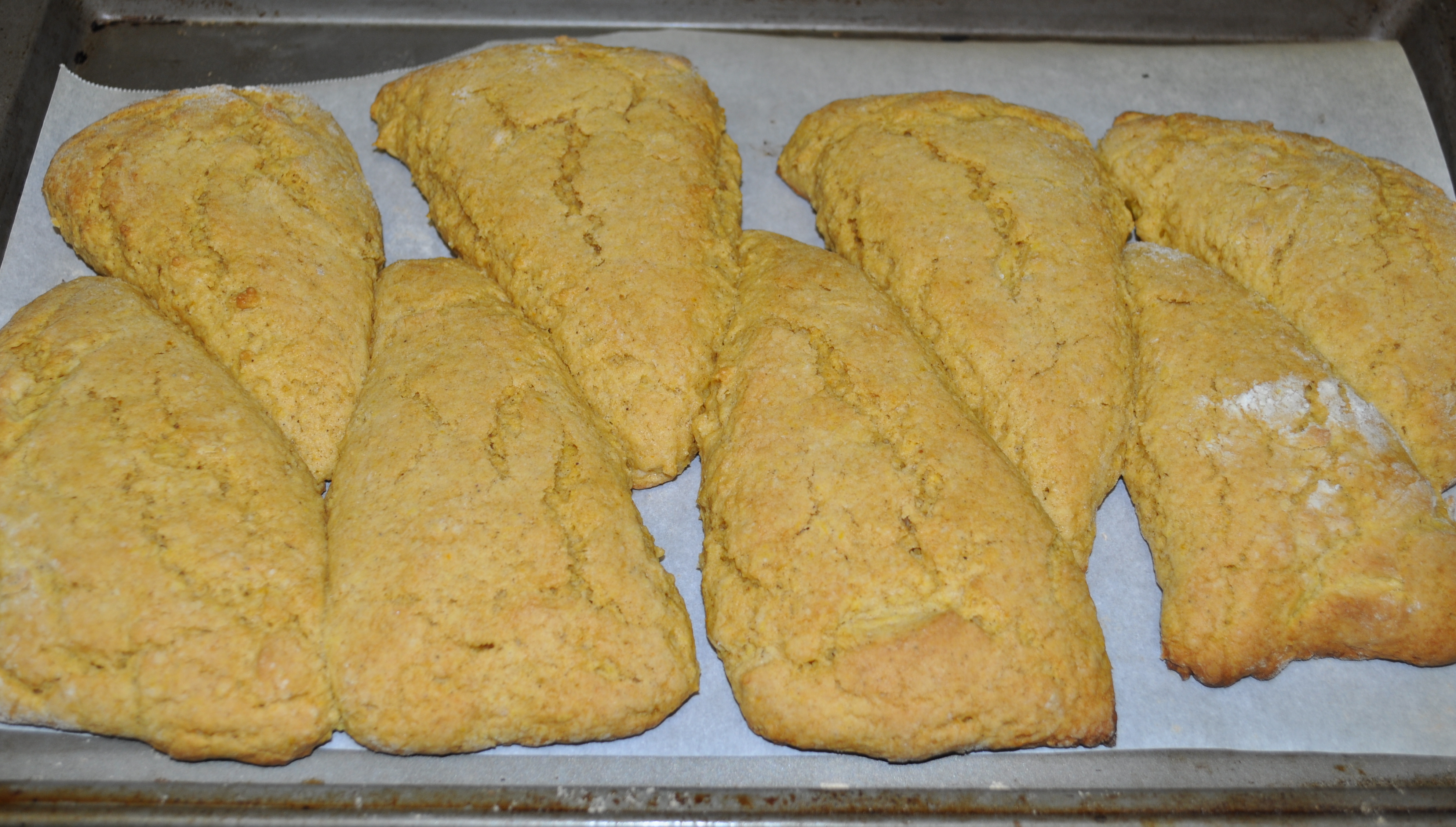 This recipe is from recipegirl.com. Any notes I’ve added to the recipe are in italics. Also I used a food processor to make the whole thing easier. Recipegirl adapted this from Top Secret Recipes and claims they are better than Starbucks Pumpkin Scones. I have never had one from Starbucks but I can tell you that these are delicious and were thoroughly enjoyed by all the Shaffer girls this morning.