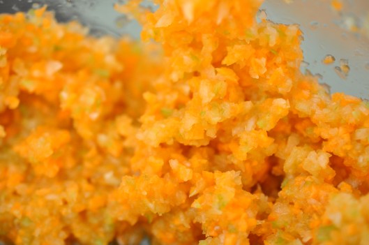 Chop the carrots, celery, and onion in a food processor until almost a paste.