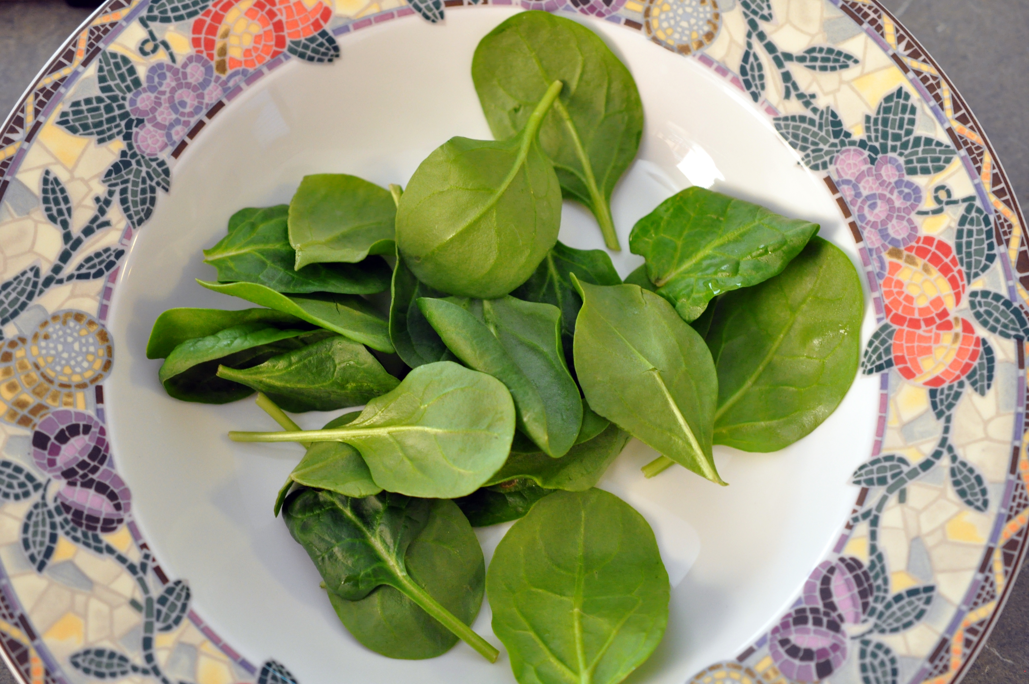 To serve, place a handful of spinach leaves in the bottom of soup bowls.