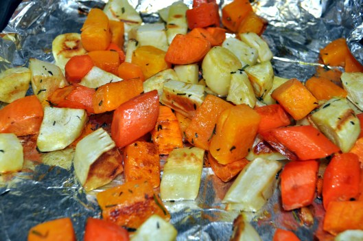 - 6 cups root vegetables peeled and cut into 1 1/2 inch pieces. I used a mixture of carrots, sweet potatoes, and parsnips.