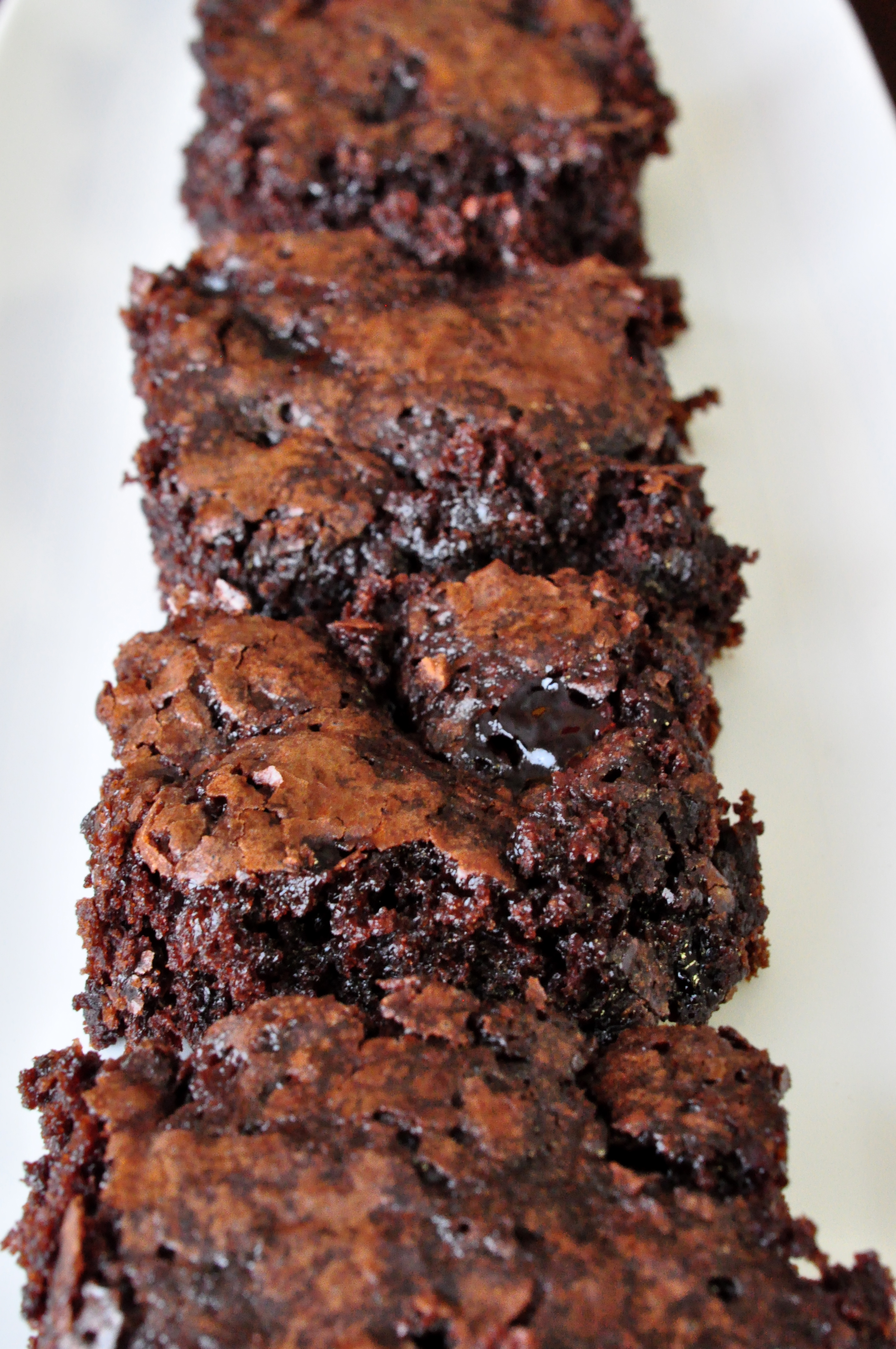 No, not that kind of special brownies! I don’t care how much you love to cook. Everyone needs a few recipes in their arsenal for those times when: 1. You’ve been invited somewhere last minute. 2. You’ve invited someone over last minute. 3. Your husband tells you at the last minute that he is supposed to bring something to a company pot-luck. 4. You don’t want/have time to go to the grocery store. 5. You don’t want/have time to spend a lot of time in the kitchen. I found myself in some combination of the above scenarios about a year ago but didn’t want to do just boxed brownie mix. I wanted something that felt a little more special. These, are indeed special! Gooey chocolatey goodness with gooey fruit goodness mixed in. Well, let me just give you a preview: