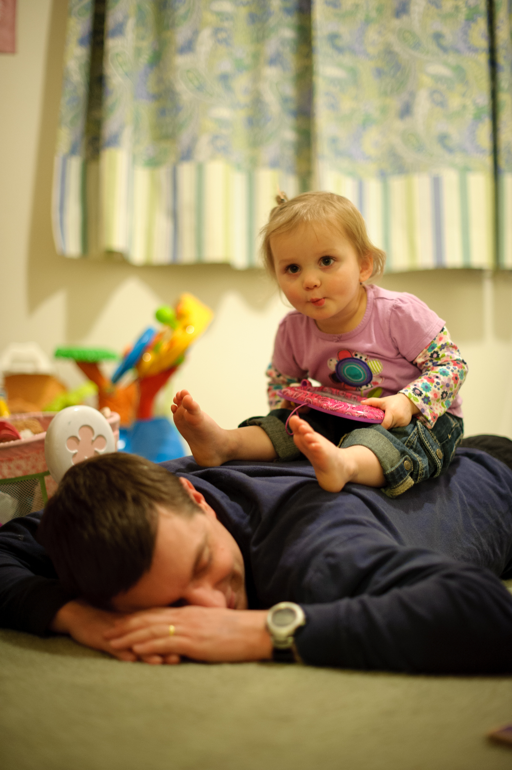 Practicing her ‘gangsta’ look (?!):Loving her big sister:Building with blocks and legos:Giving kisses:Using daddy as a platform on which to play and showing off her stellar fishy lips:Here is her reaction to being sung to with her cupcake: