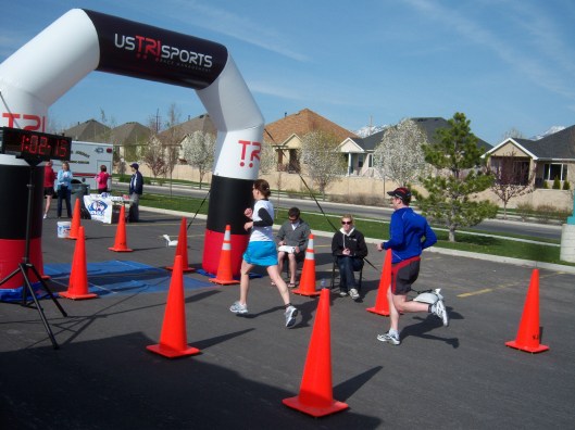 • About a year after I started running – treadmill only at that point! – Andy tricked me into going for a run outside together. (I had a weird fear of running outside. For more on that see: https://sarahsjoys.com/2011/08/28/overcoming-seeds-of-self-doubt/). Then he tricked me into doing a 10K together. This required running twice as far as I ever had before! Bless his heart, he stayed with me the whole time. Okay…he MAY have been under threat of sleeping outside and cooking for himself if he abandoned me during my first race ever, but it meant a lot that he set his pride aside and ran with me instead of running his own race! He even let me cross the line first: