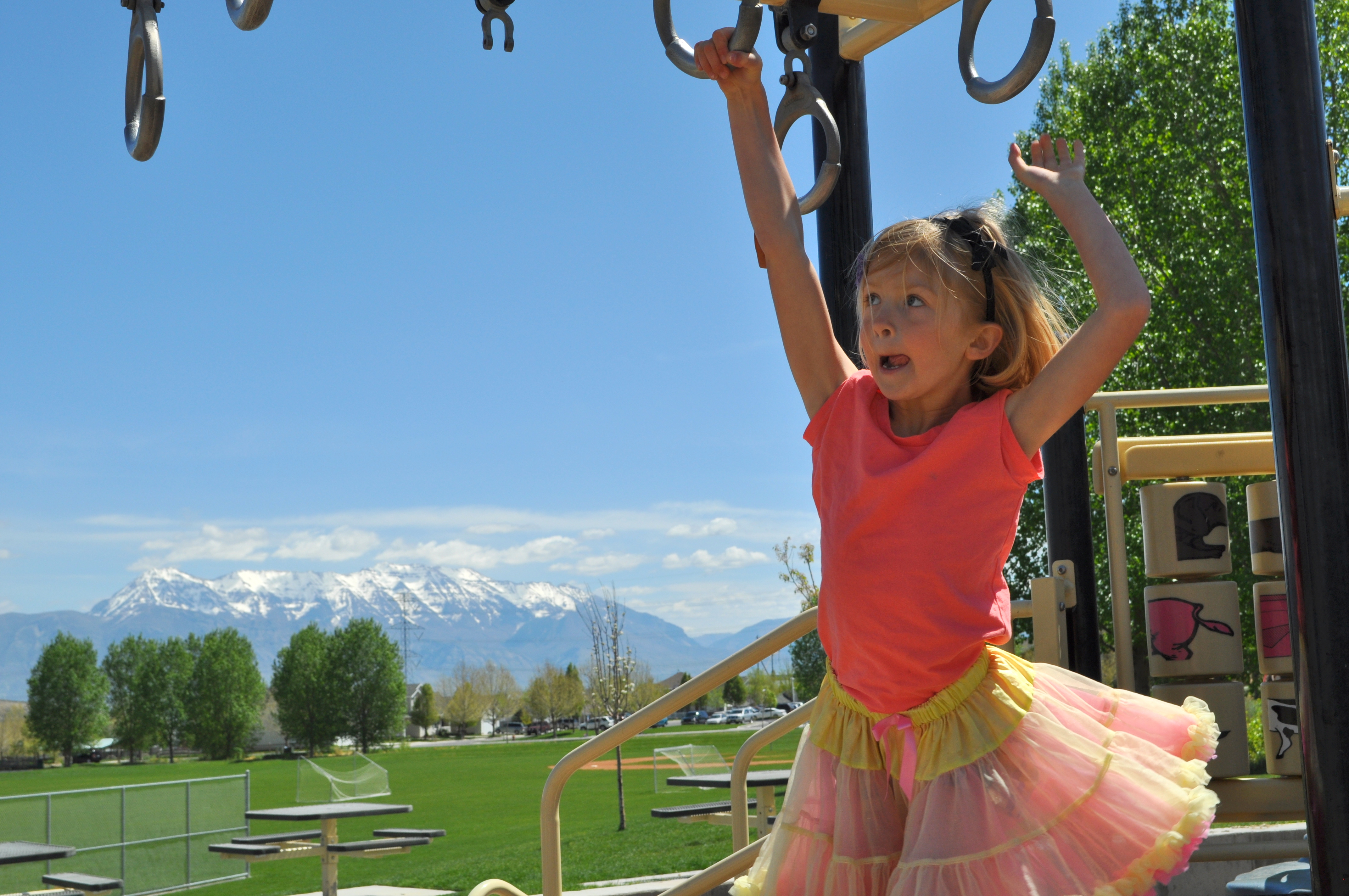 Since beginning 1st grade Trinity has put her heart and soul into mastering the monkey bars during recess. I thought it would be a passing phase, but it has been an entire year of after school daily updates on her Monkey Bar feats. She has stuck with it through rain, wind, snow, blisters, and calluses. Her triumphant milestones have included making it all the way across, becoming proficient in both the regular and “slippery” monkey bars (still not sure what that means. One set on the school playground is evidently harder than another?), skipping every other bar as she crosses sides and now she has achieved the grande finale. Β She unveiled her latest accomplishment at the playground by our house this afternoon: