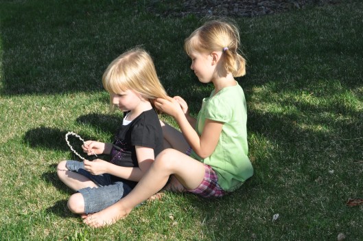I couldn’t resist grabbing my camera and snapping a photo because it seemed to represent the fact that the girls are getting old enough to move into a whole new phase of friendship. The kind where they share tender moments of doing each other’s hair while sharing confidences and the secrets of their hearts.