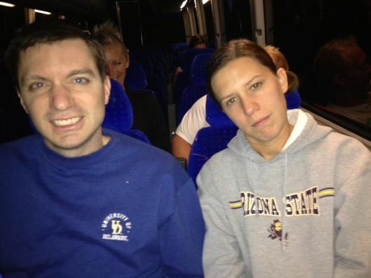 We had a 4AM appointment with a bus to take us up to Tibble Fork Reservoir in American Fork Canyon. We were joined by Jenny whose name may as well have been on the back of the race shirts with the rest of the sponsors seeing as how she was my training buddy, watched my kids at times so I could get out for a run without them, AND agreed to run it with me. Well….it WAS kind of her fault I signed up in the first place, so it was the least she could do. π Β She took a picture of Andy and I in all of our unbridled enthusiasm for the early start: