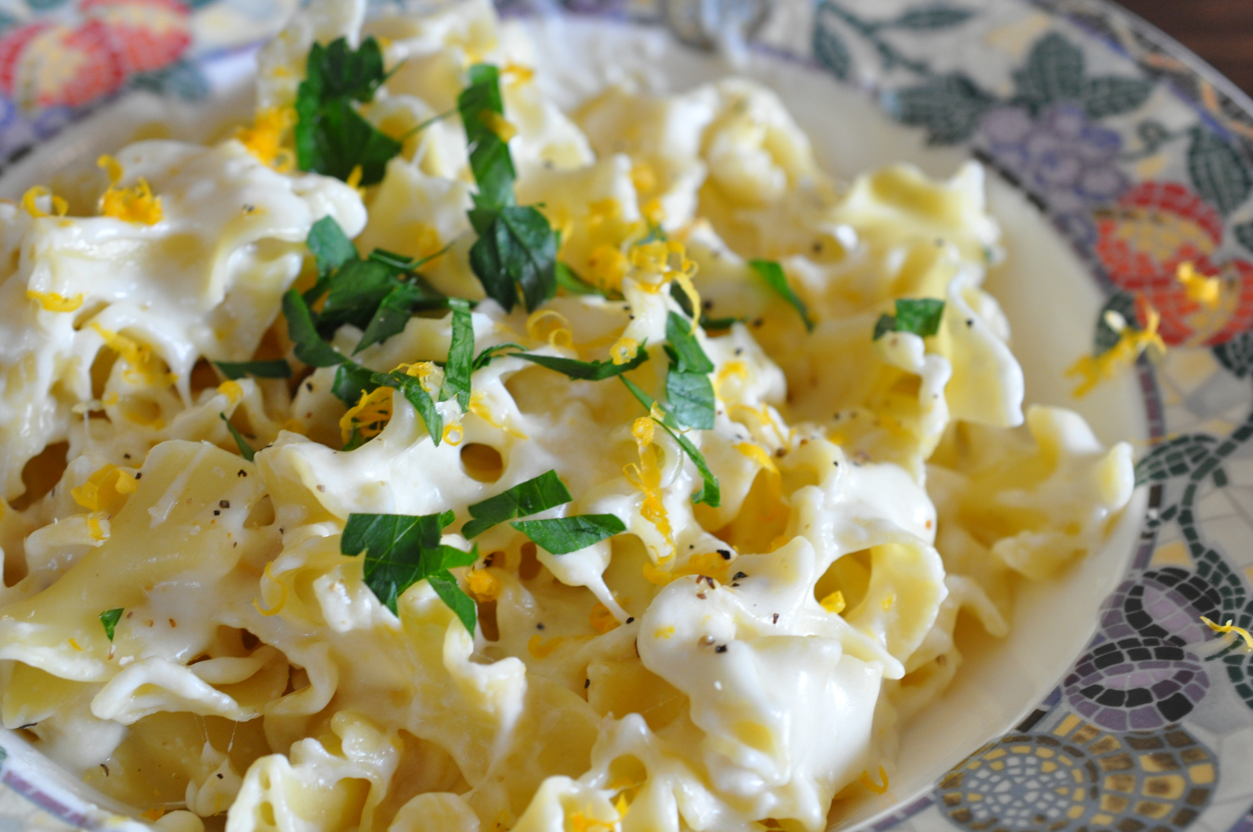 comfort food, Creamy Lemon Pasta, dinner, Egg Noddles, food, Lemon Pasta, lemons, Macaroni and Cheese Variation, Mozarella, vegetarian
