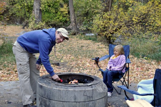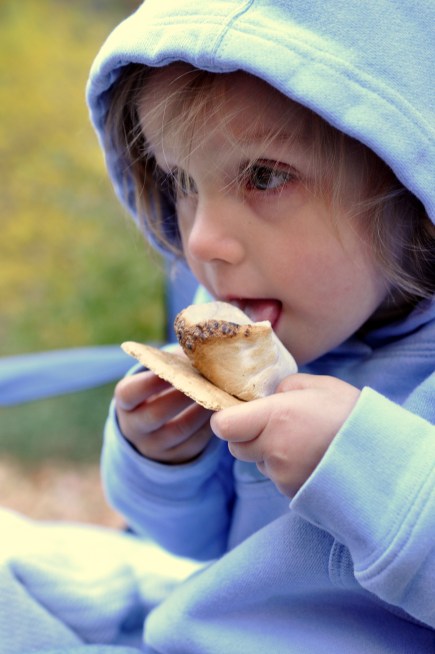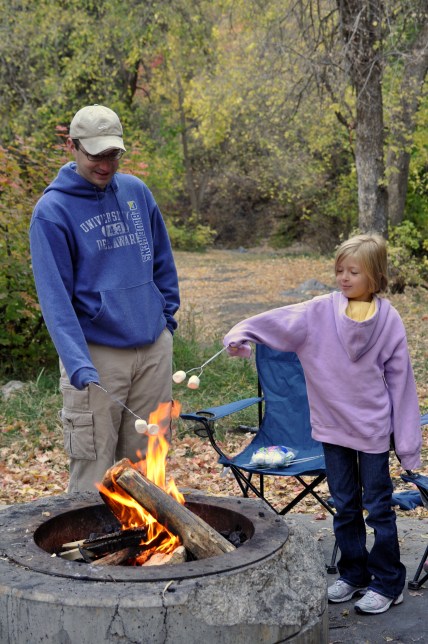 “Do you know what we should do?” I asked Andy as we lay snuggled in our down comforter appreciating the fact that Trinity is old enough to help her sister out of bed and keep an eye on her on early Saturdays. “I know this is absurd, but we should throw on some sweatshirts, throw the girls in the car, take them up into the canyon, start a campfire and roast some marshmallows.”