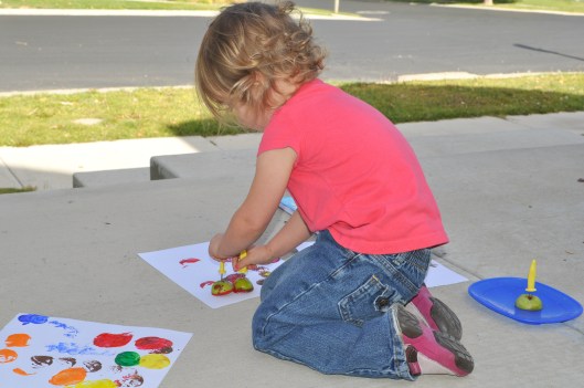 I would like to give props to Andy who left for another business trip but spent his Sunday telling me to relax, then doing laundry, cleaning the kitchen, taking the kids to the playground, and somewhere in there managed a trip to the store for razor blades but returned home with a dozen red roses! So my super-awesome husband is what enabled me to start the week thinking about fun with the girls rather than my usual Monday cleaning routine. 🙂 There will be a fresh apple pie waiting for you when you get home honey!