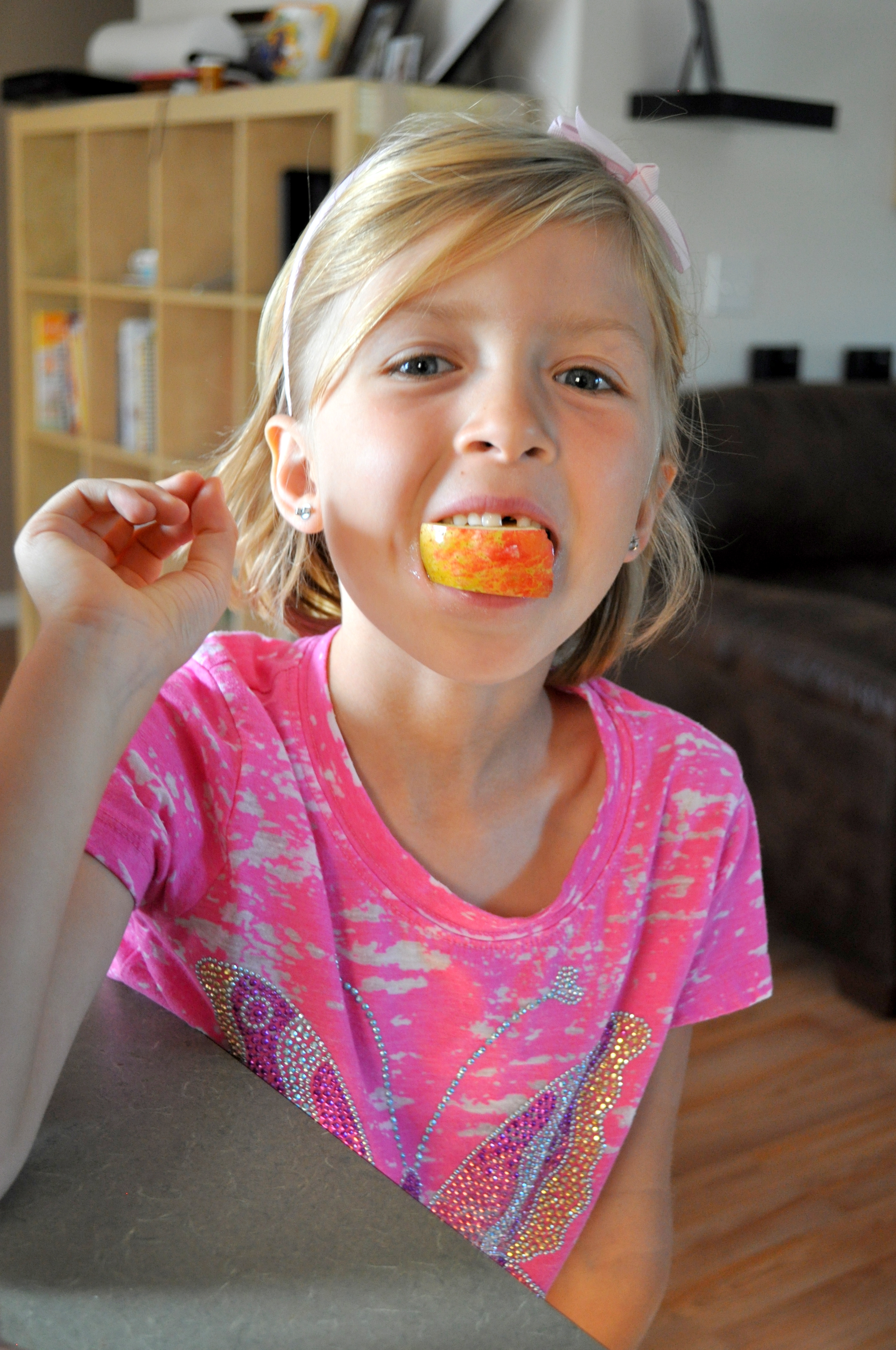 Once home, and after naptime, we found a use for the small, super tart, rock hard apples that grow on the tree in front of our house: