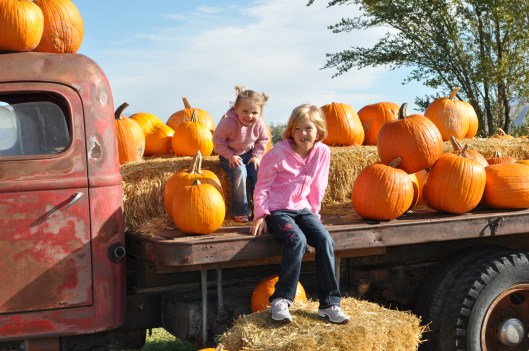 When the school kids started loading back onto the hayride, the very nice driver offered to drop them off and come back for us afterwards. This meant we had the entire place to ourselves!! I asked the girls to take a few pictures, after which I would put the camera away and we could enjoy having our run of the place. It was a ton of fun!!