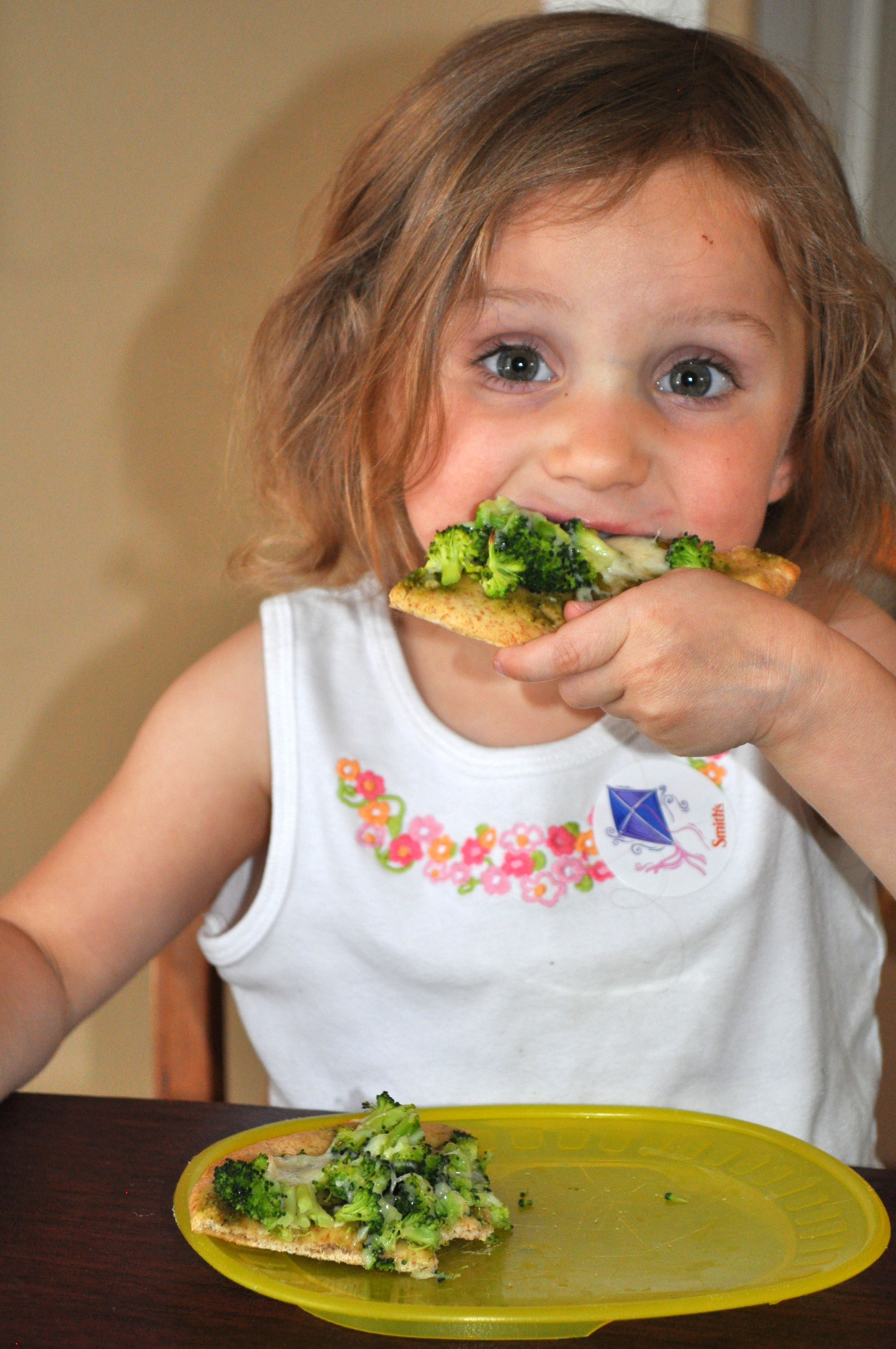 broccoli, cooking, cooking for kids, Easy Recipes, grated mozzarella, healthy cooking, pesto, Pesto Broccoli Pizza, pita bread, pizza