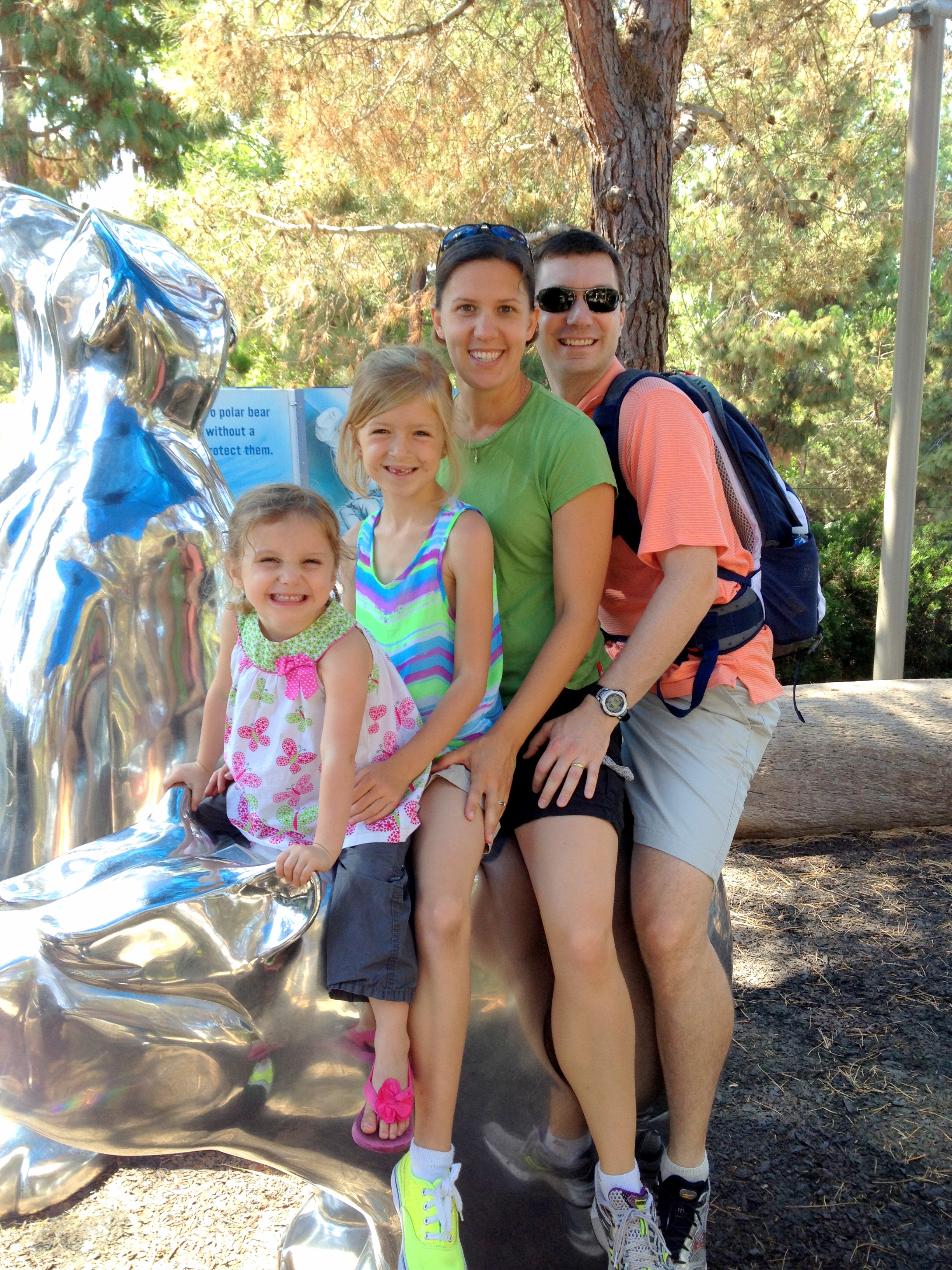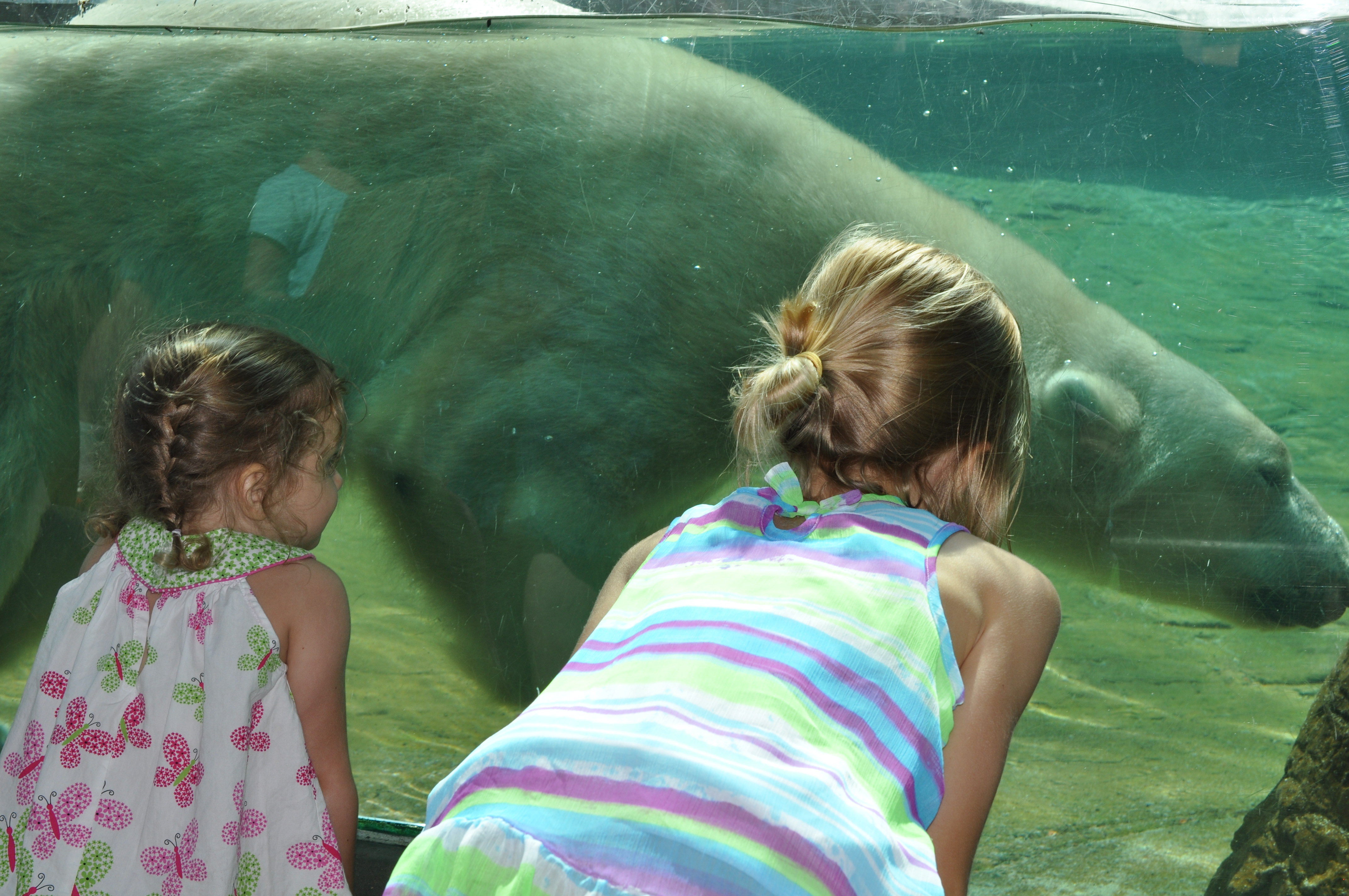 The polar bear woke from her nap and decided to go for a swim directly in front of us much to the girl’s delight: