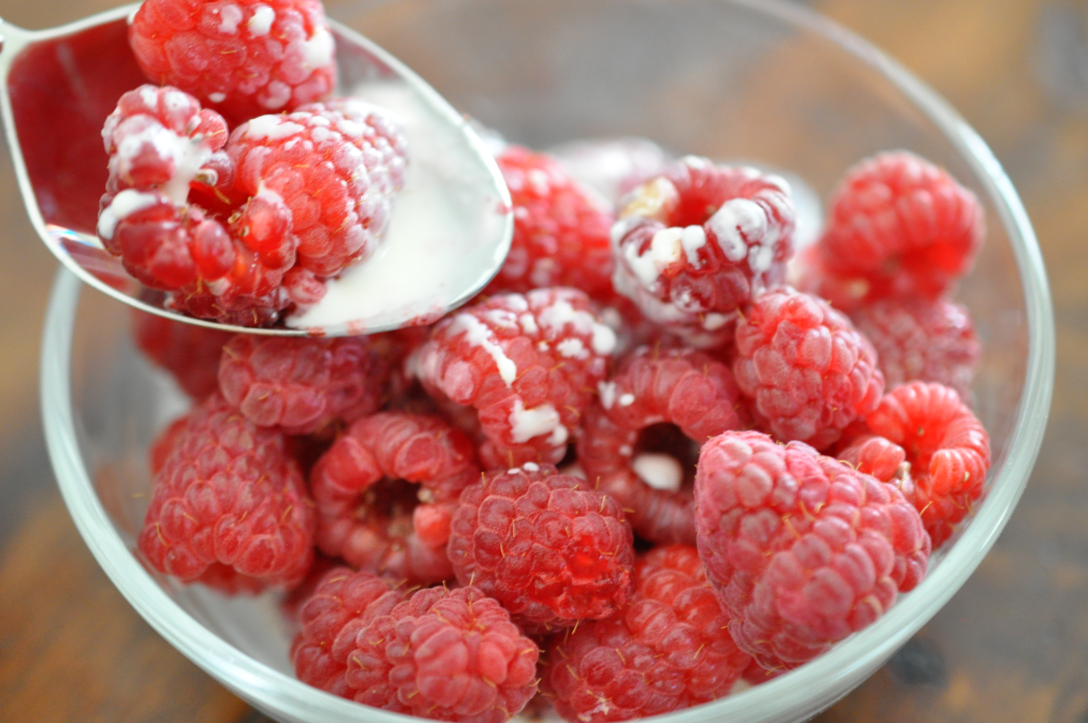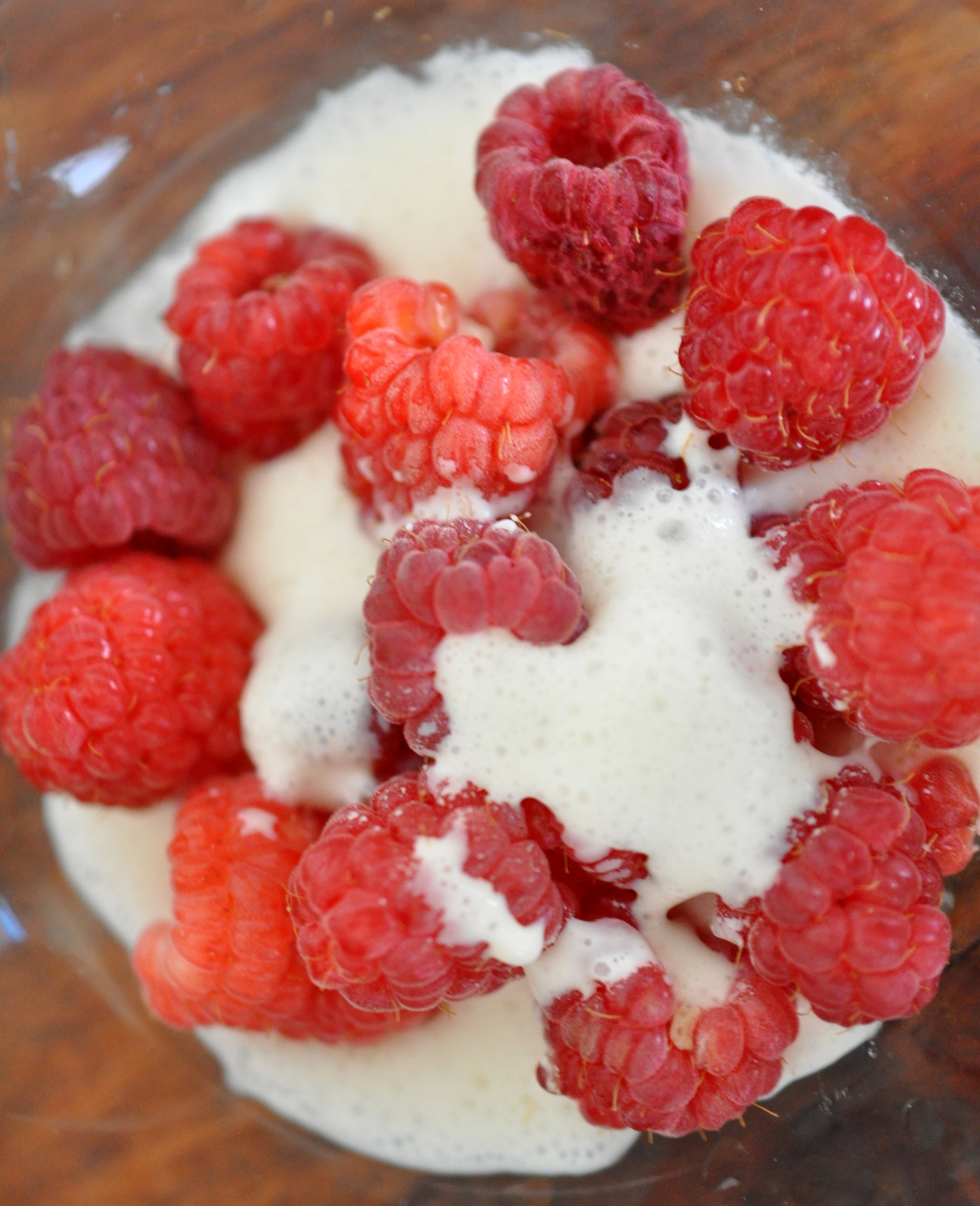 Today I added a touch of raw honey and a splash of vanilla. I should have taken a picture of Lilly as I photographed the final product because she stood there, inches away from the berries and cream, spoon in hand, patiently anticipating her chance to tuck in to this treat: