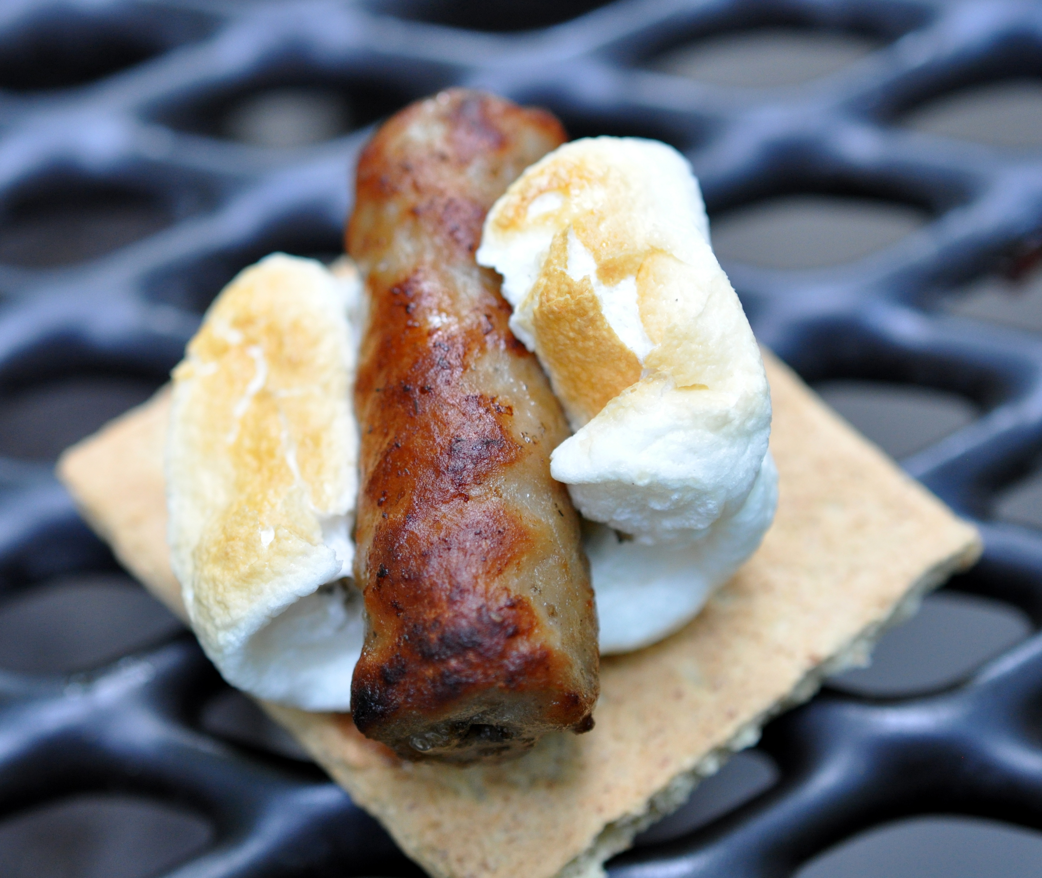 I decided to give it a whirl. I give to you today, Breakfast S’mores: Turkey Maple Sausage, Roasted Marshmallow, and Graham Crackers: