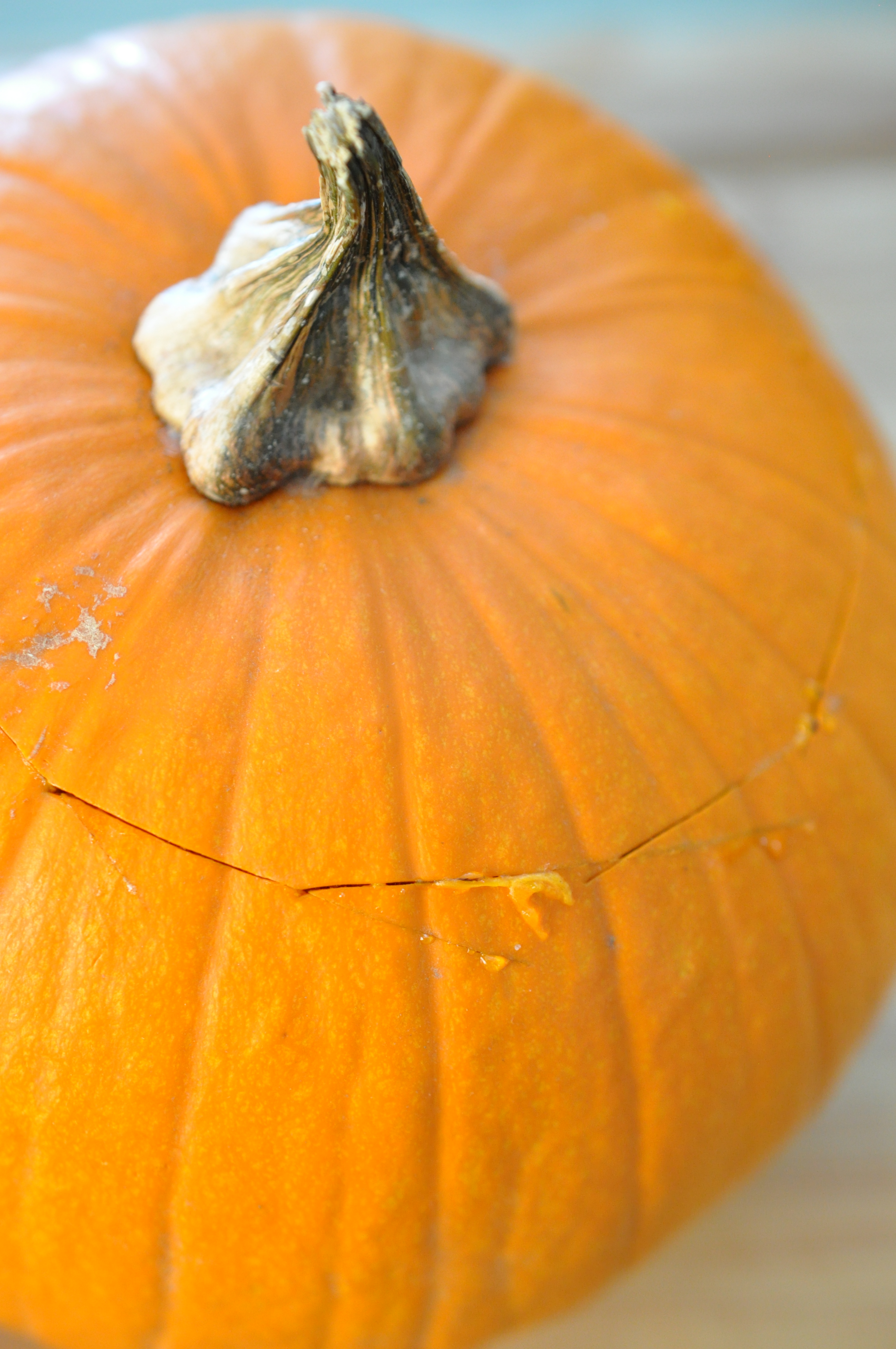 Place the tops back on, place the pumpkins on a baking sheet and place into the oven for 2-3 hours. I had smaller pumpkins and they were done in 2.5 hours.