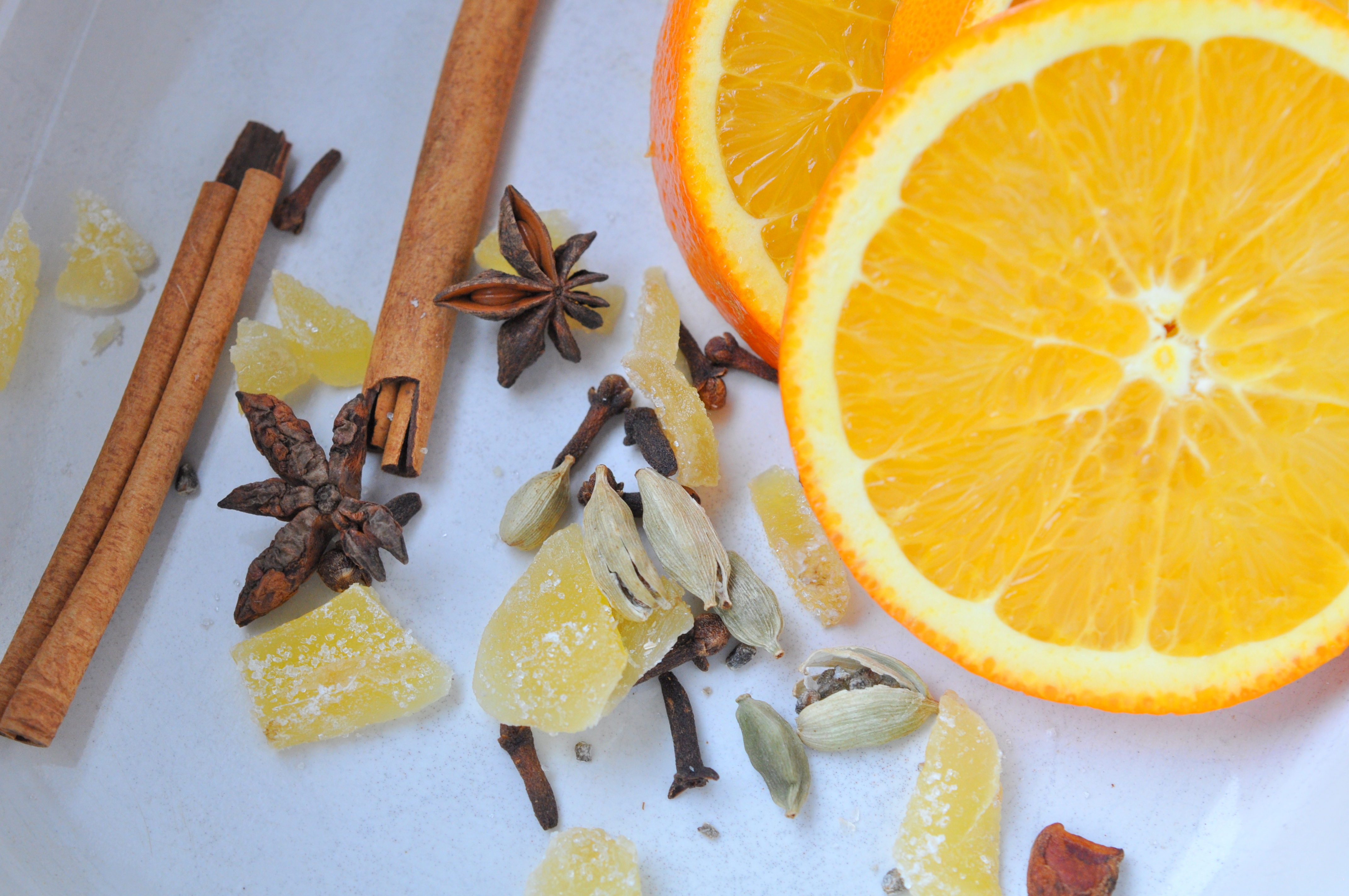 Place all ingredients into a saucepan or a slow cooker. In a saucepan, bring to a simmer for 10 minutes then turn heat down to low, cover, and let steep for 1 hour.