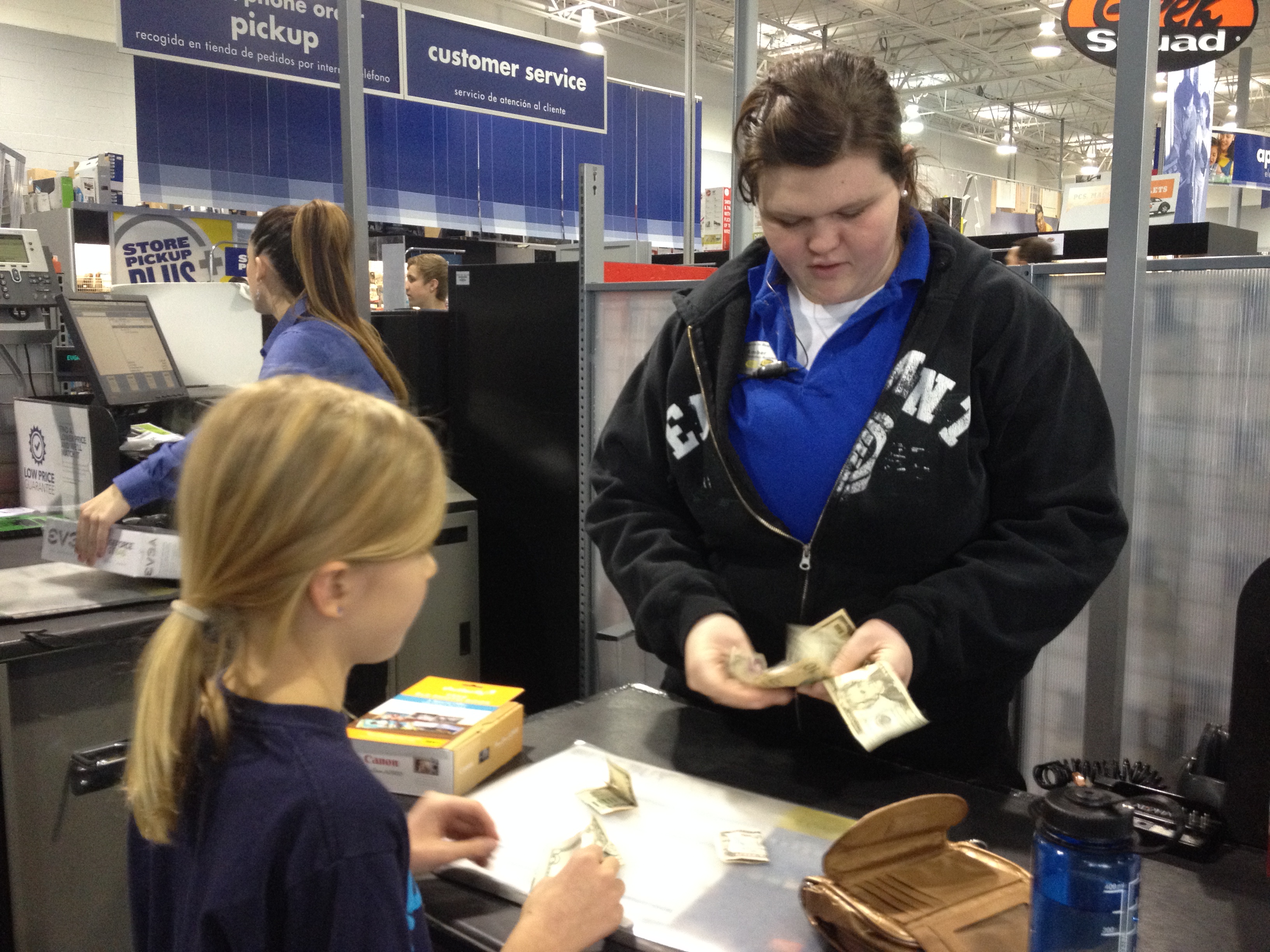 Here she is paying for her camera. The checkout lady was so sweet and excited for her!:
