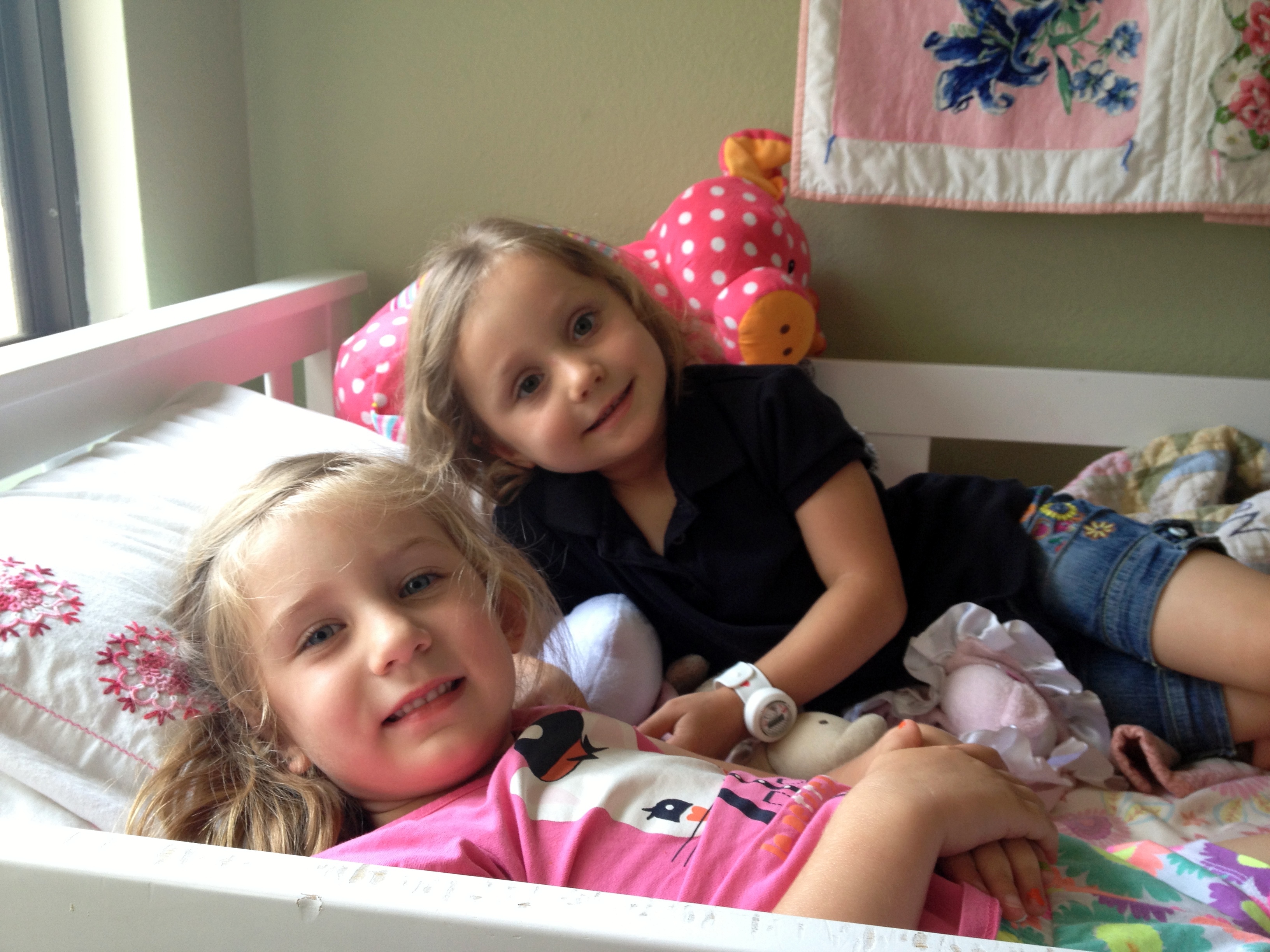 This past weekend we got to spend two days with Bethany and her girls and see the beginnings of what we hope is a third generation of friendship. We’ve spent time together in the past with our little ones, but they are reaching an age where they remember each other and can get lost in playing together for hours. We enjoyed a “girls only” weekend as Andy has not yet arrived in California and David was sent packing (happily) to his brother’s for guy time and the World Cup. Here’s what the girls were up to while the boys were away: