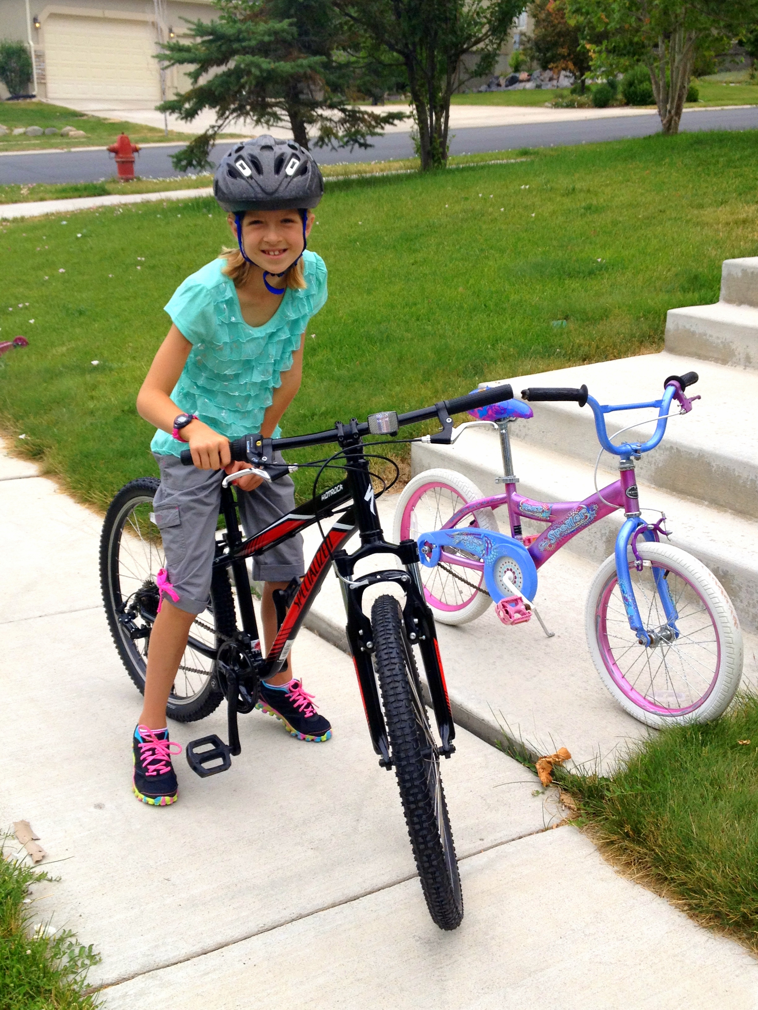 “It looks more grown up this way and I feel grown up now,” she said of her bike helmet that is now plain black after somehow losing it’s decorative colors. She was standing on the sidewalk over her brand new bike. The grown up kind of bike. The kind with gears Andy was teaching her to use. The kind she can ride with him on the trails behind our house (when she’s ready). She test rode this red and black bike along with another that was pink and black. I thought for sure she’d choose the one with pink. Just because it had pink. To my surprise she chose the red and black bike. She liked the way it felt when she rode it more. “It is actually a better bike,” Andy said later. I could tell he was proud she had discerned that for herself and made her decision based on feel rather than simply color. She is, indeed, growing up daily.