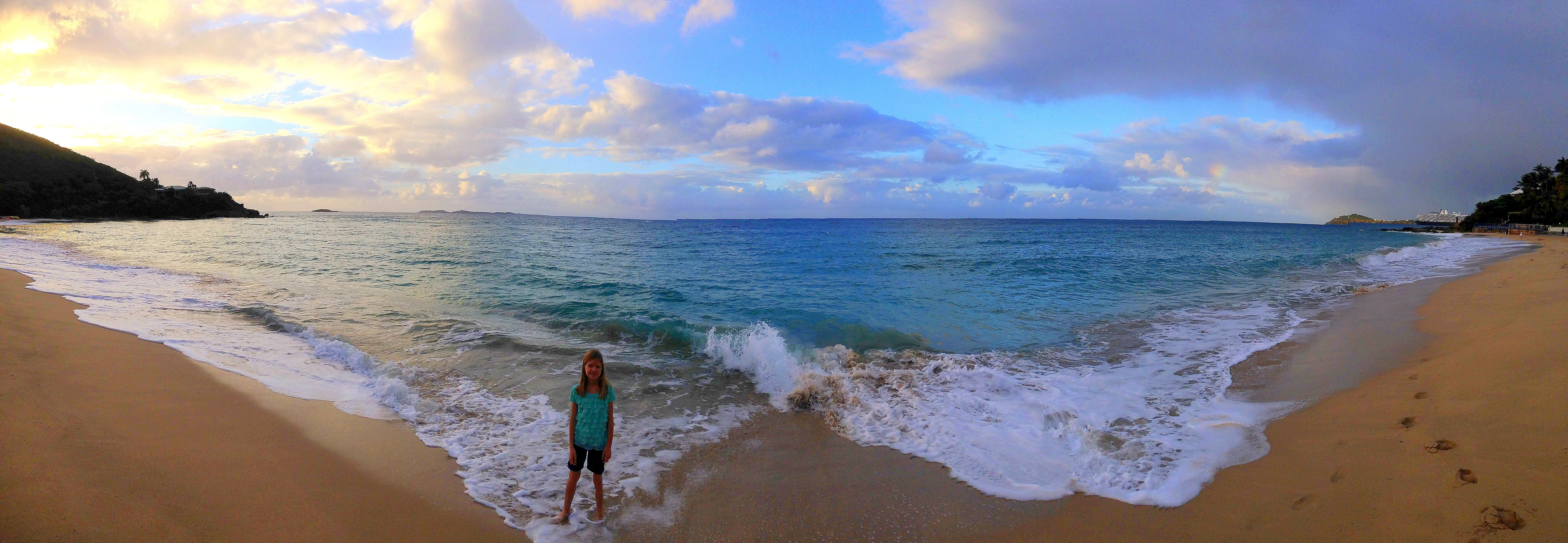 Andy surprised the girls and I this Christmas by revealing he had cashed in some airline points for tickets to St. Thomas! Just about the time I was at the end of my tolerance for cold this winter, the trip was upon us. We left the day after my birthday and were so excited we didn’t even mind waking up at 3:00AM to make our flight. Better yet? Because of his rewards status Andy got bumped to first class on the longer second flight and gave me the seat. So I spent some of the first hours of vacation sipping a mimosa and listening to my new playlist in peace. He’s seriously the best.