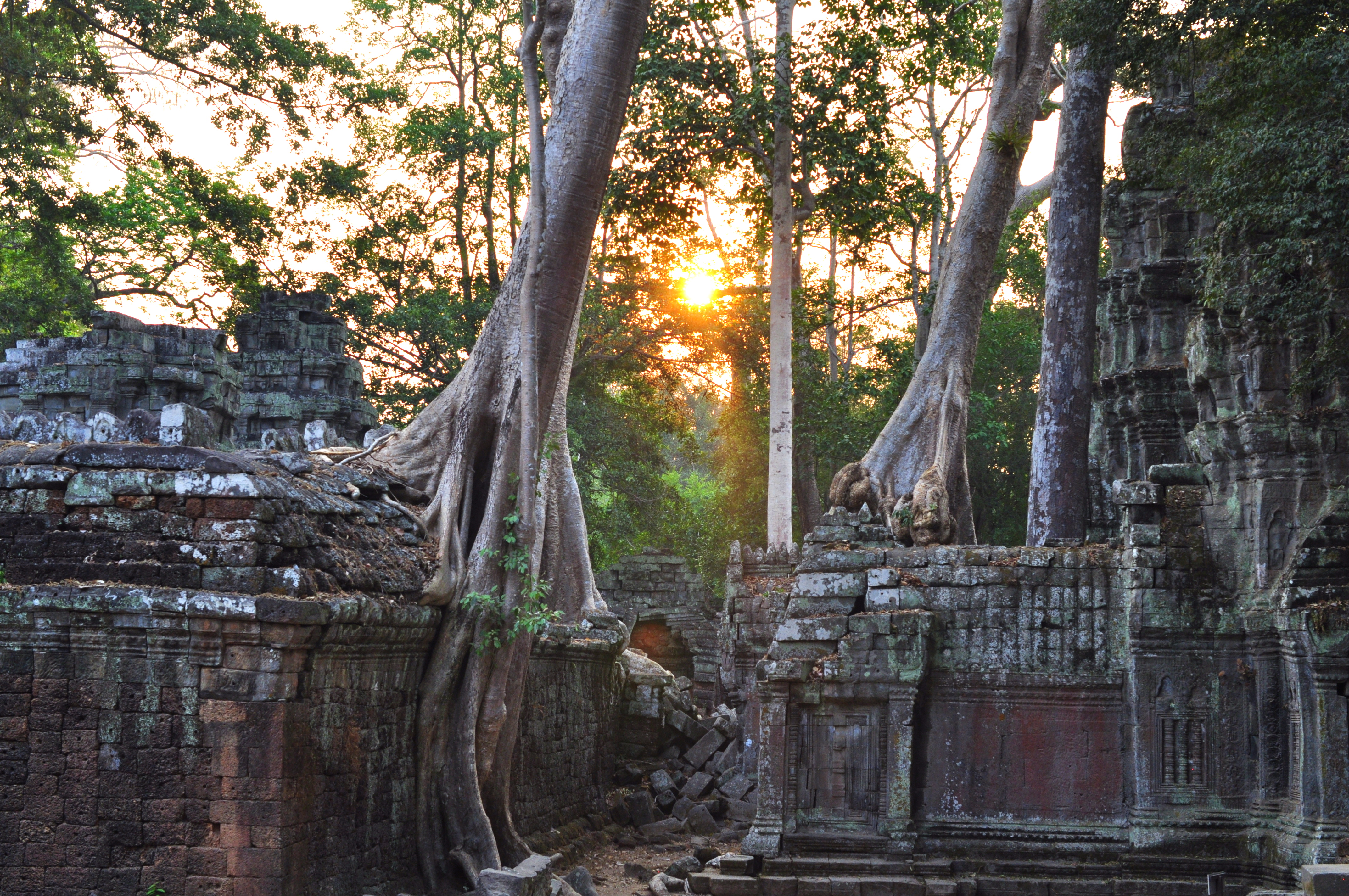 The Sun rises behind Ta Prohm: