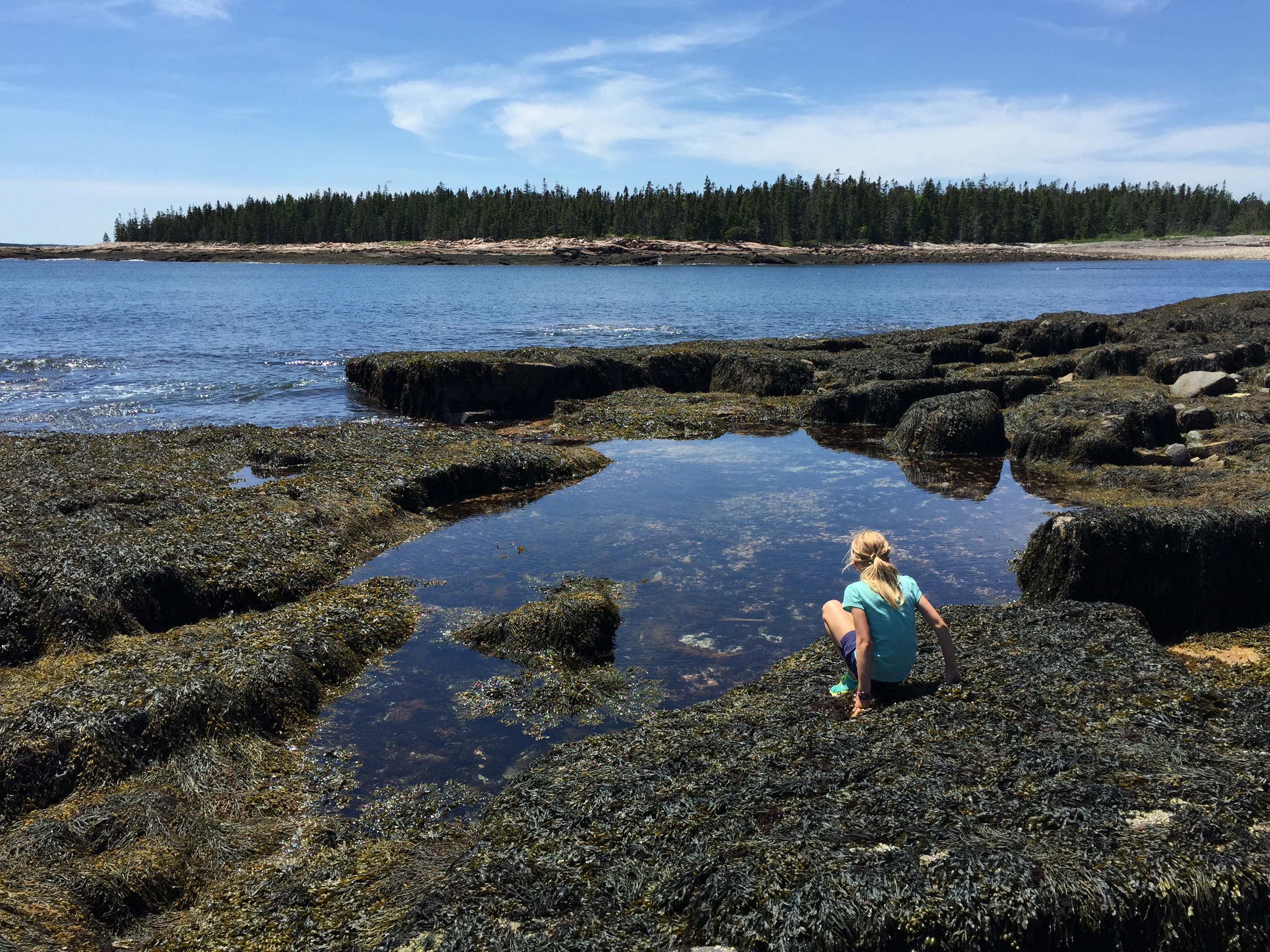 There are many many amazing things about Maine. The tidepools are not one of them. They are surprisingly devoid of life. But I suppose we have been rather spoiled with the tide-pools we’ve visited over the last 7 years! The water must simply be too cold this far north. It didn’t stop Trin (or the rest of us!) from walking over thick, slippery, squelchy, seaweed to investigate: